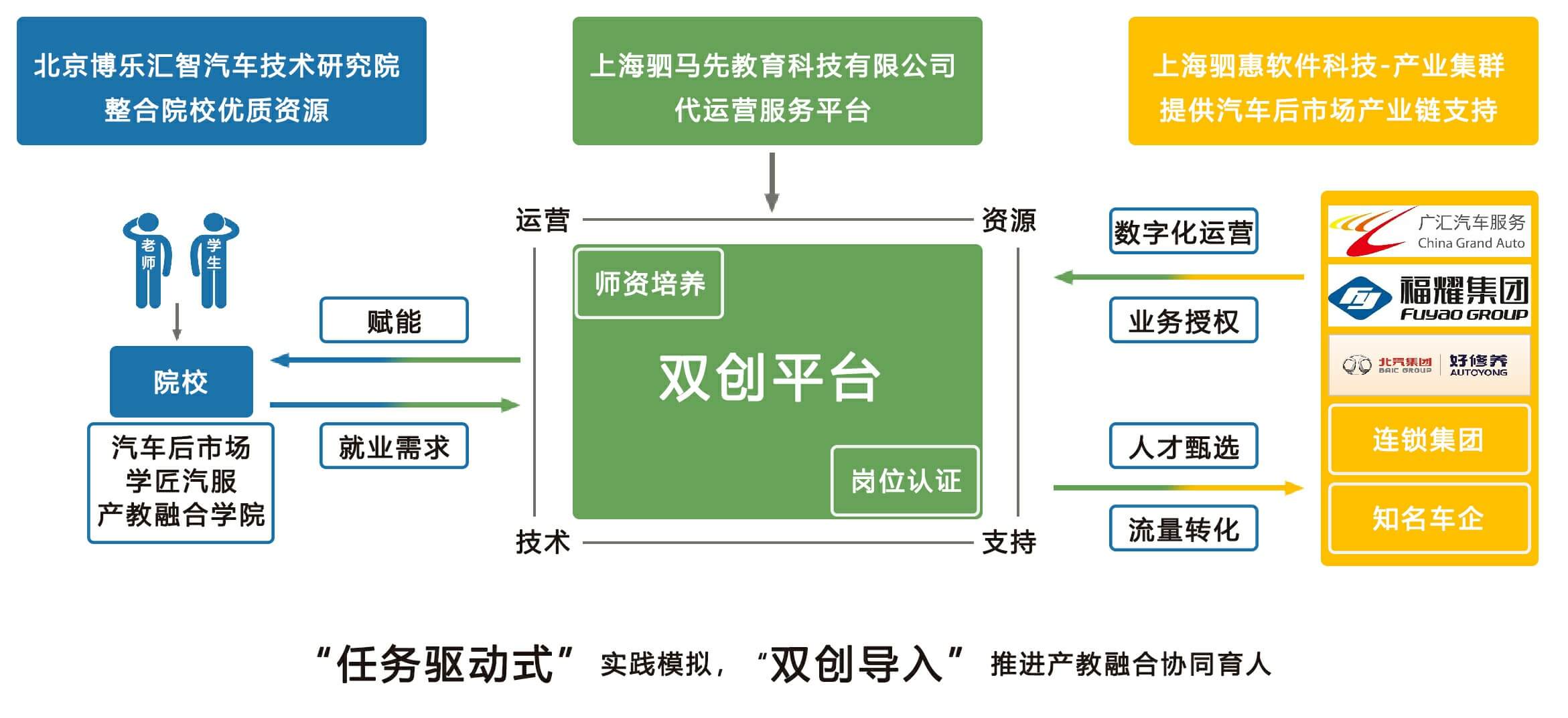 與合作企業(yè)共同制定人才培養(yǎng)方案,授權(quán)駟馬先與相關(guān)院校簽約辦班,以學(xué)匠汽服,經(jīng)營為主線,以半年為期,將課程與日常經(jīng)營活動緊密結(jié)合,實(shí)現(xiàn)產(chǎn)教融合協(xié)同育人的目標(biāo)。